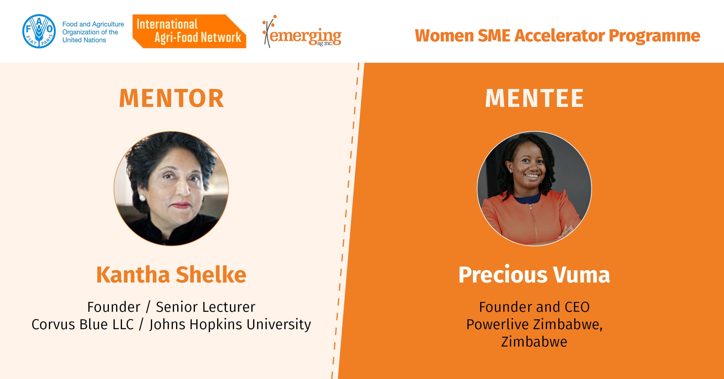 The 50 women entrepreneurs are paired with 50 global women leaders in the agriculture sector as mentors. The mentees also participate in 3 tailor-made workshops where they are coached on various aspects of running their business. The programme also includes dedicated capacity development and short training sessions offered on the FAO eLearning Academy. At the end of the programme, the mentees receive certification that has many benefits for their businesses.